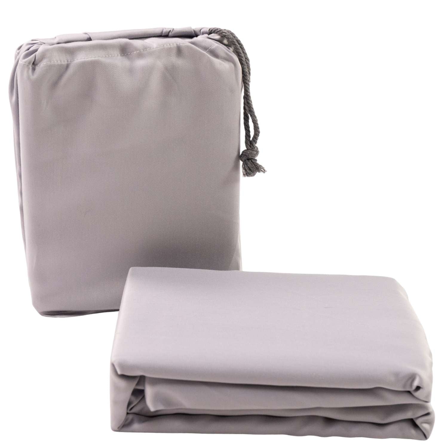 Clean drape, soft matte sheen, and timeless Classic Grey create a bed that feels calm, quiet, and restorative.