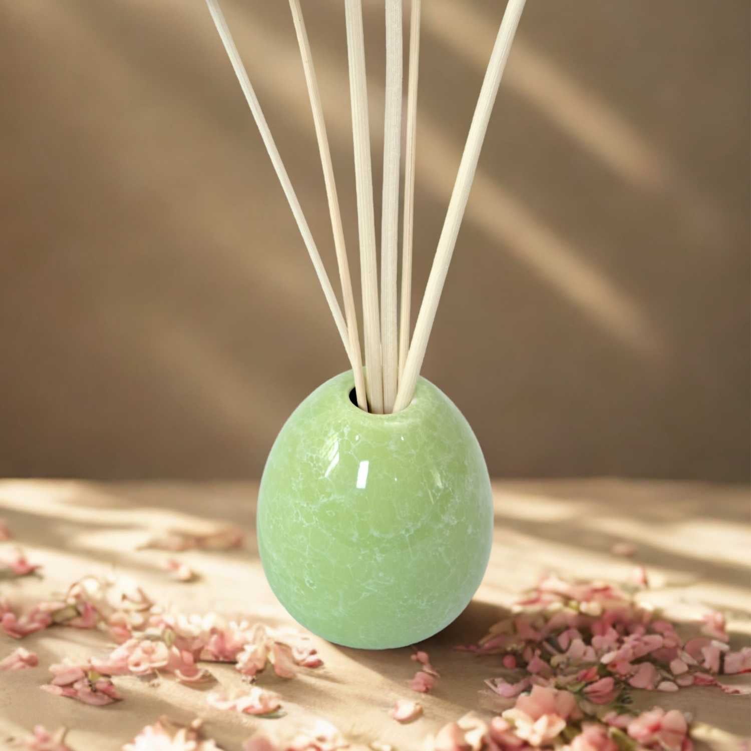 A handcrafted ceramic reed diffuser bottle designed to diffuse fragrance evenly and beautifully over time — bringing visual calm, soft scent flow, and intentional presence into your space.